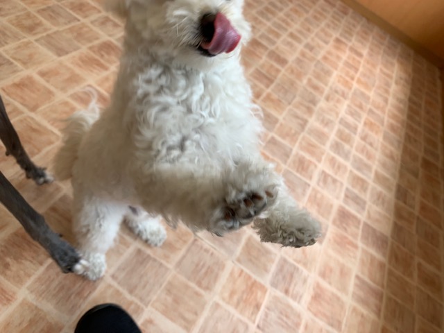 おやつが入ったポーチを狙っていました(゜o゜)