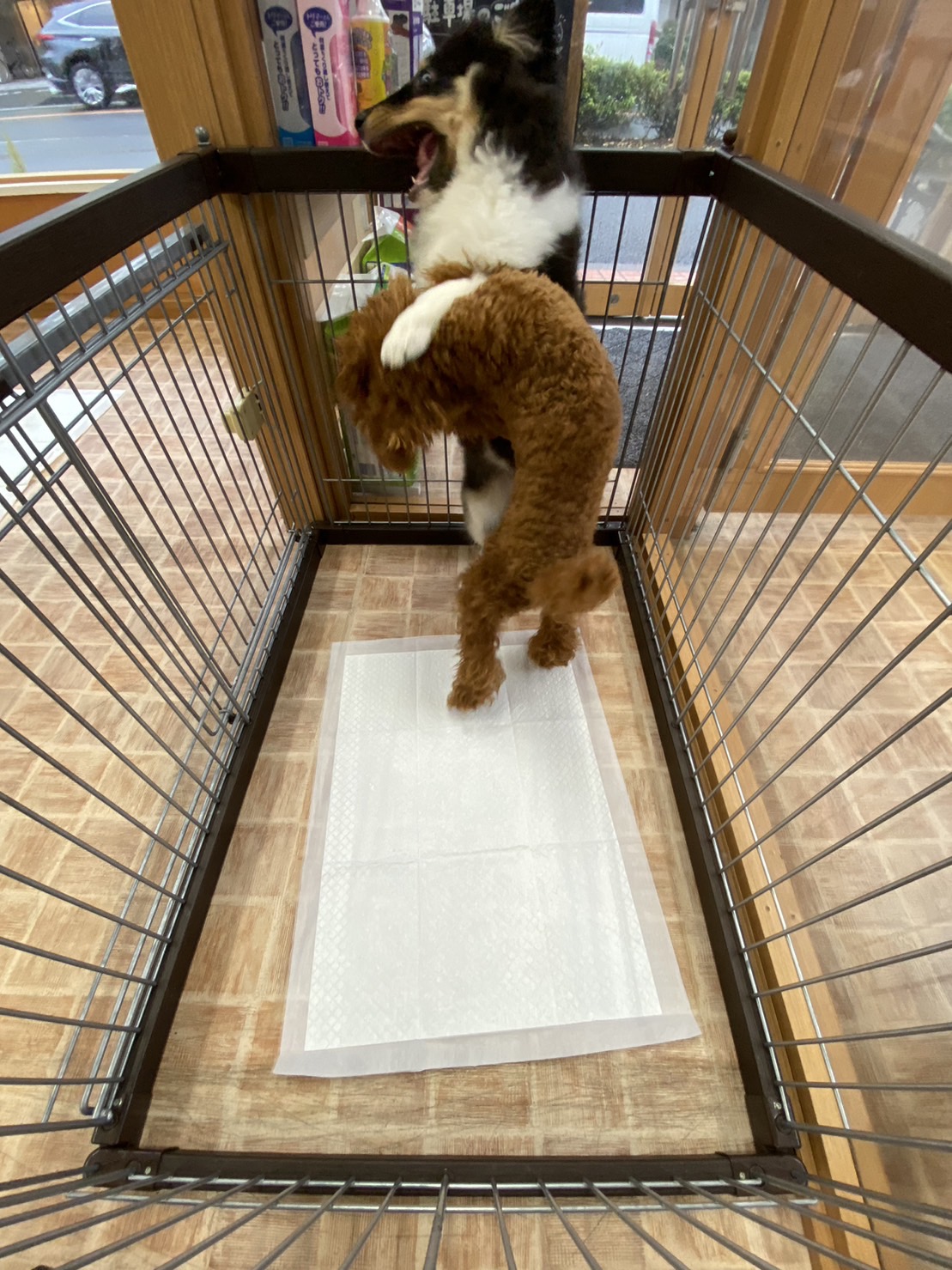 今日はスタッフ犬のONEちゃんと学校の生徒のりりちゃん(プードル)の様子を少しご紹介。