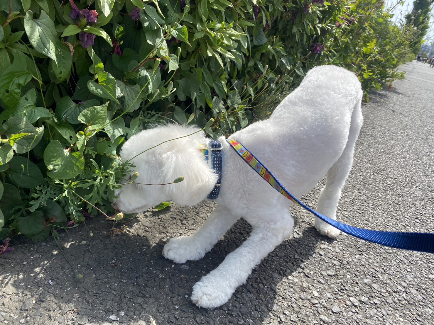 お散歩日和 2023年5月13日 Category:犬の学校の様子 お散歩で満足気なワンちゃんをご覧ください(^^)/ 芝垣先生とおにぎりのおもちゃを咥えながら歩いていた 柴犬のミルクティーちゃん! 自慢げに見せつけながらカメラ目線(;^ω^) 一生懸命に植え込みの匂いを嗅いでいるのはMIXのぽぽくん! たくさん匂いを嗅いで満足した様子(^^♪ 最近は暑くなってきたのでお散歩に行くタイミングが難しいですよね(-_-;) またお天気が丁度良い日にお散歩に行ければいいなと思います♪
