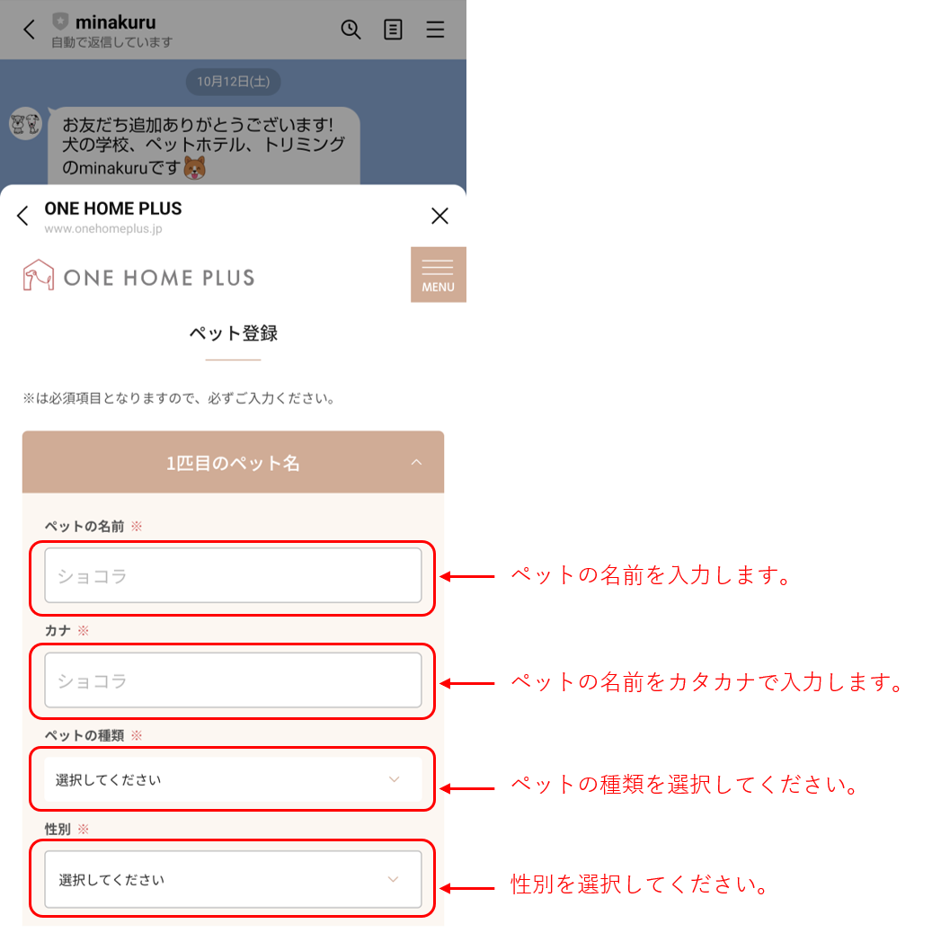 8. ペットの情報を入力していきます。