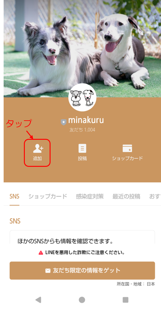 2. minakuruのLINEページが開きますので、