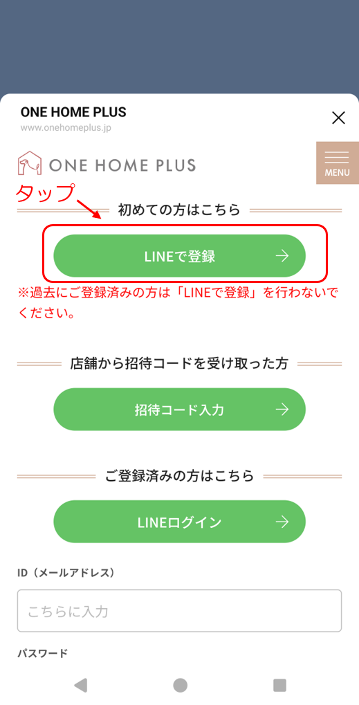 「会員登録/LINEで予約する」をタップします。