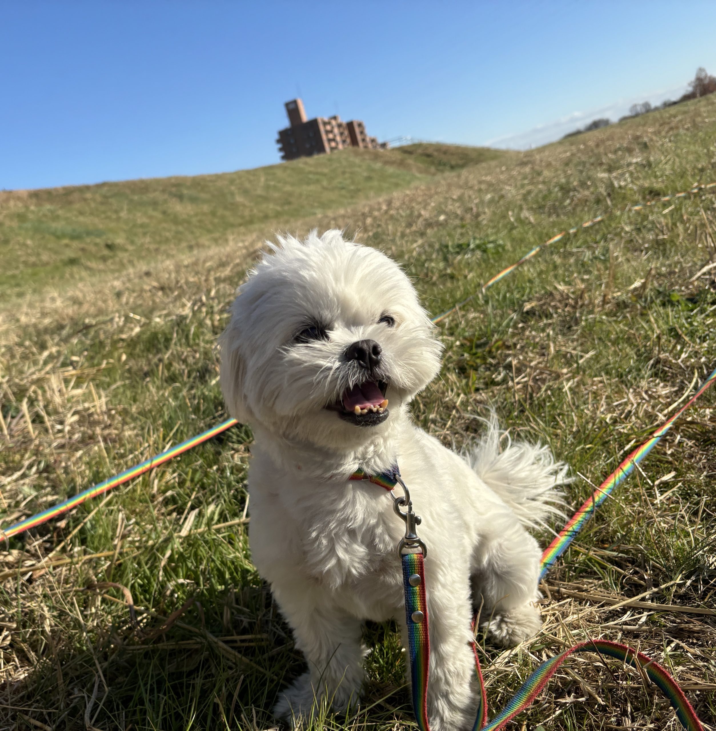 風が強く、寒い日でしたがワンちゃん達と元気に土手に行ってきました~!