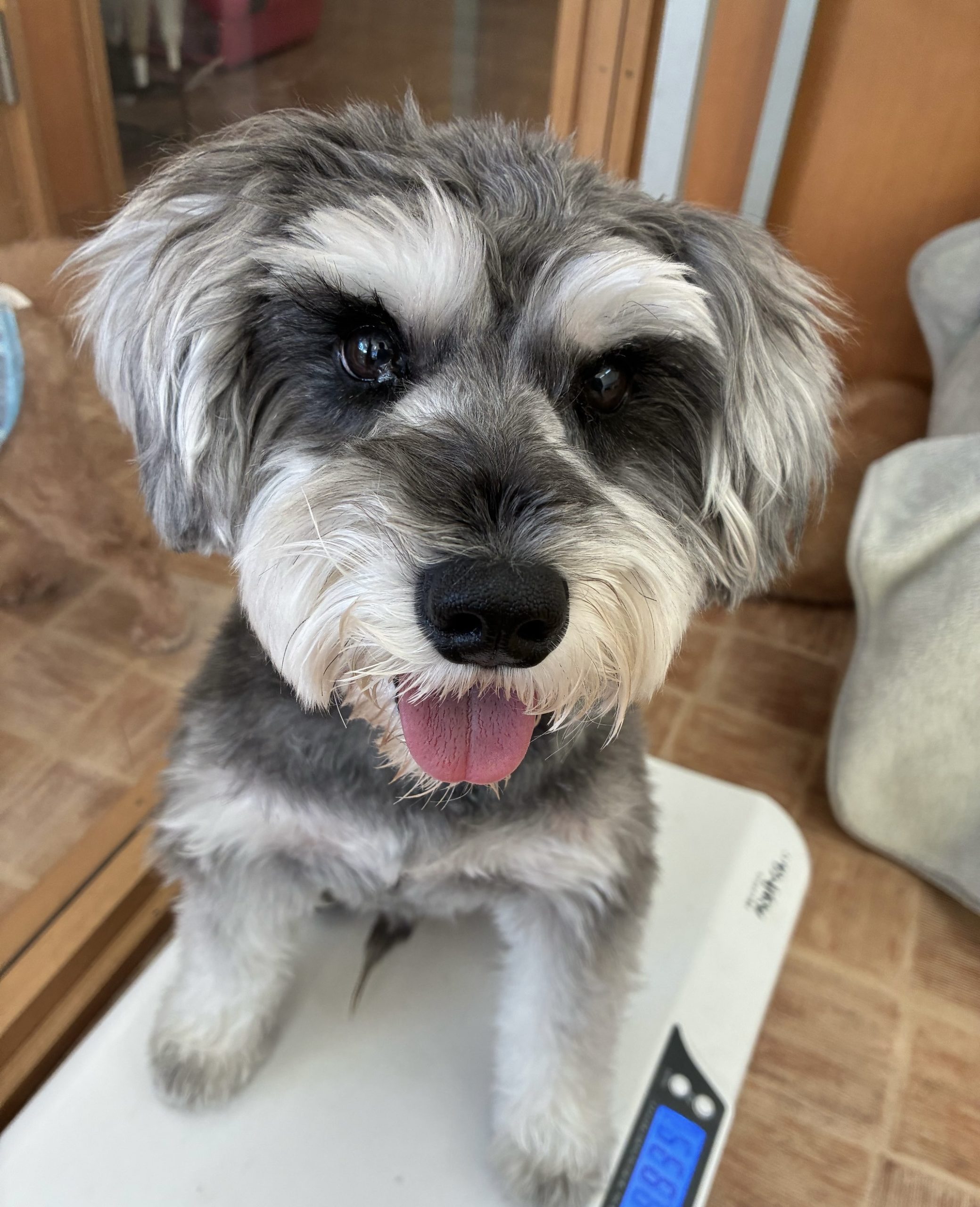 体重計の上でにこにこしているセナくん🥰