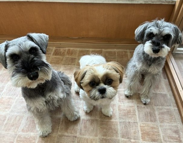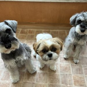 シュナウザーちゃんに挟まれて、