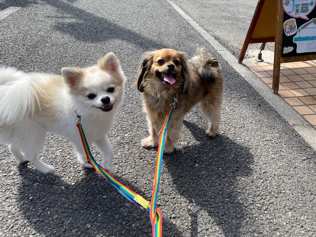 ご家族にもふたり同時のお散歩ではなく、一頭ずつ練習をしてもらっています!