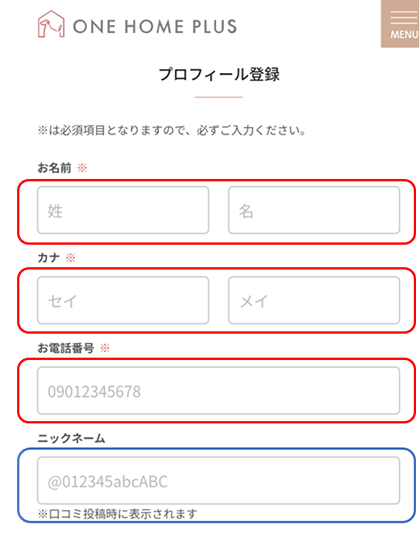 ONE HOME PLUSを通して口コミ投稿を行う際に表示される名前になります。