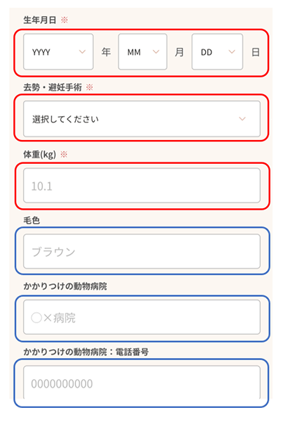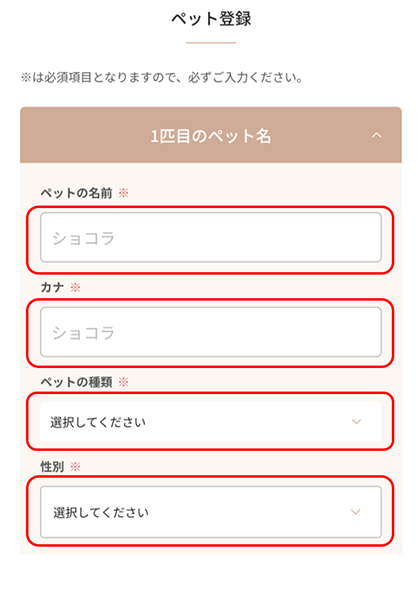入力内容をご確認いただく画面が表示され、続いて「ご愛犬情報」の入力に移ります。