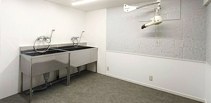 トリミングルームは大型犬も対応可能の広々した空間を確保。ワンちゃんのストレスにならないトリミングを提供いたします。